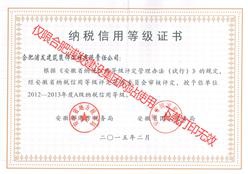 安徽省國家稅務(wù)局2012-2013納稅信用等級(jí)證書